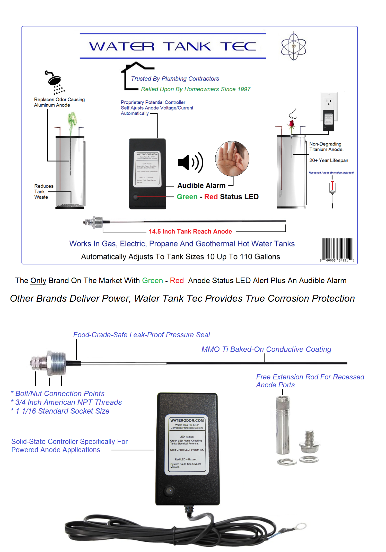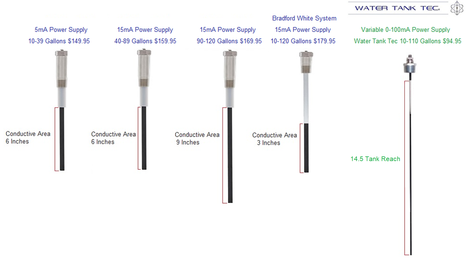 If this brand was a true ICCP system there would be no need to charge more for a larger tank sizes. Increasing the Anode length while using the same Power Supply does not enhance electron distribution.