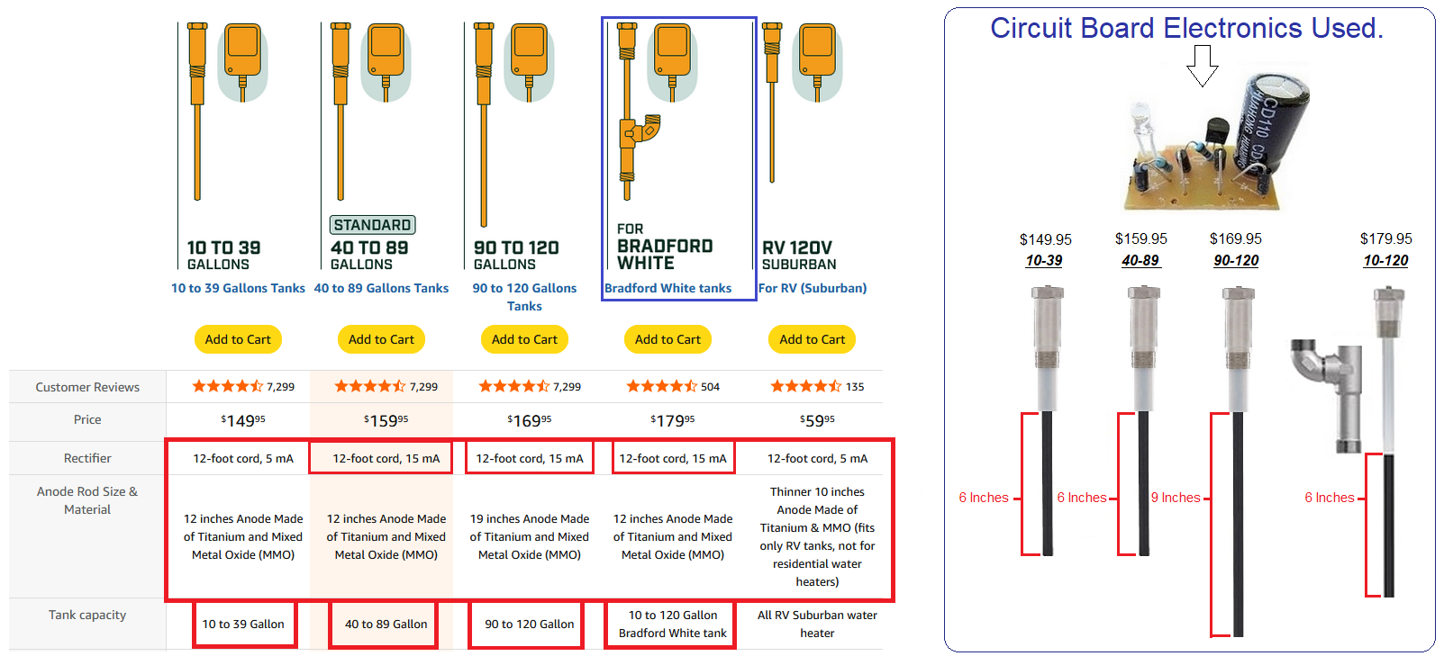 Powered Anodes have been flooding the market for years. They are nothing more than mass-produced “copy cat” units made in White-Label factories by the thousands each month then sold to buyers which then exaggerate performance claims on their listings. Paid video ads then hype these products sensationalism when in reality, these products should never be used in a water tank. Consumers are best suited to stick with the Aluminum Anode.