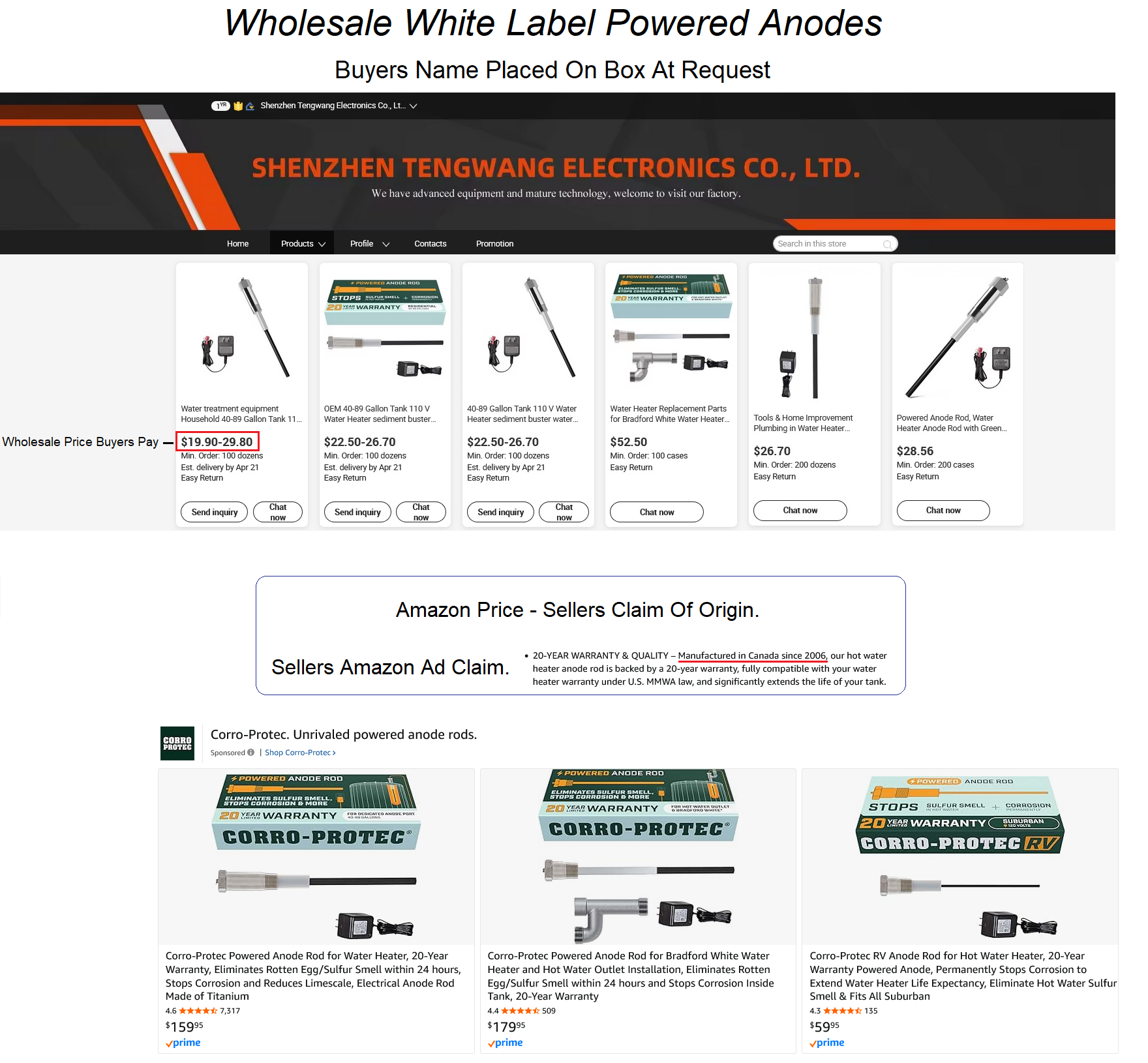 Competition. A brand called VATTCEEL accidentally mentions Corro Protect in their ad. 1 factory, multiple Powered Anodes produced.