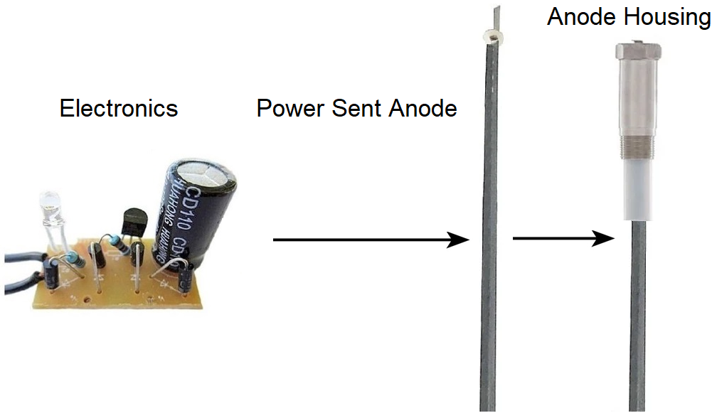 The Carbon Steel Tank absorbs these electrons, preventing corrosion the same way as the Aluminum Anode did.